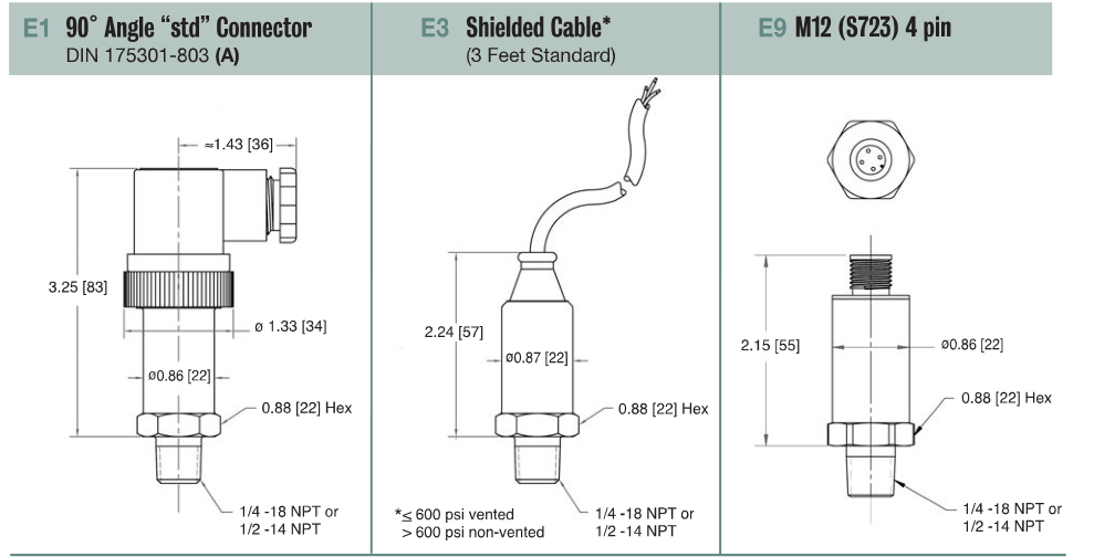 工業(yè)標(biāo)準(zhǔn)電氣連接,包括DIN 175301-803A,屏蔽電纜和M12 (S7243) 4引腳