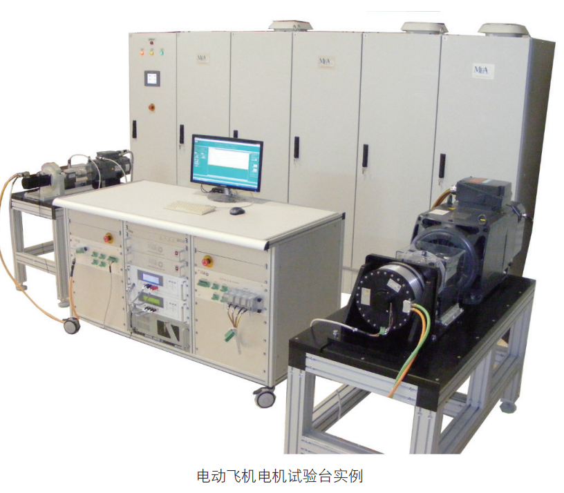 電動飛機電機測試和模擬電機測試系統(tǒng)用 于在實驗室環(huán)境中測試不同的電氣硬件應 用和電機,模擬其空氣應用的真實情 況。應用包括:電動飛機和無人機、風扇等。 所有的應用測試與系統(tǒng)包括,重量 輕的電機和控制器 , 高扭矩和高轉速電機。MEA 航空航天測試系統(tǒng)包括:? 極低轉動慣量負載電機? 在不同靜態(tài)和動態(tài)條件下的風扇負載模 擬? 特 殊送 風裝 置,用 于 冷卻 被測 電 機 (MUT)? 高速發(fā)電機測試——ISG。? 系統(tǒng)集成可以與硬件在(HiL)中的硬 件元素結合完成。? 硬件環(huán)路(HiL)包括前輪轉向,鐵鳥 和 ISTR 鉆機解決方案。? 可測試高達 700 千瓦的電機,直流 電壓為 1200V/1000A。 右邊的照片顯示了一個實驗室系統(tǒng),包括 測試從1千瓦到140千瓦的電動機的能力, 以及它們的硬件。 系統(tǒng)電池模擬能力使用高達 1200 V/1000 A 的雙向電源進行。 被測電機(MUT)可以是無刷直流電機、 永磁同步電機和其他電機的應用。MUT 可以通過 CAN、PWM、模擬和其他 類型的通信協(xié)議進行控制。