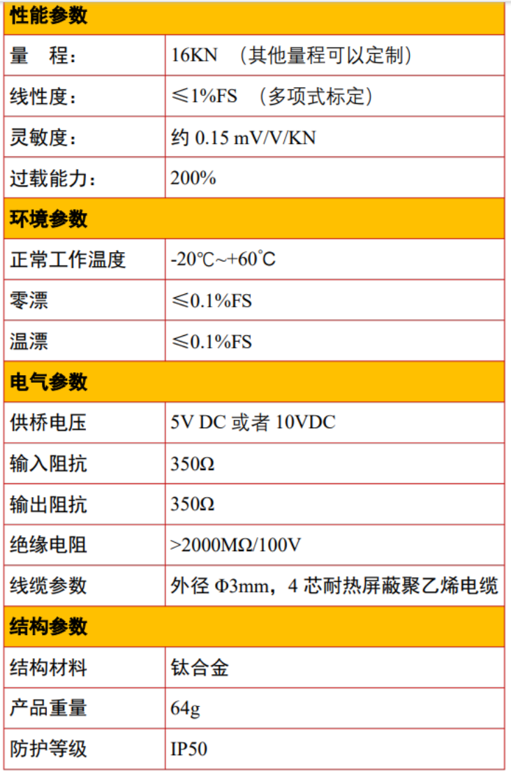 用于碰撞試驗(yàn)中的安全帶張力測(cè)量,該設(shè)計(jì)為螺絲旋緊 式,量程:16KN(其他量程可以定制),主體為鈦合金輕 量化設(shè)計(jì),多項(xiàng)式擬合標(biāo)定線性誤差≤1%,根部線纜如果 斷裂后可以很方便拆換,另外有數(shù)字量DTI/ADM和模擬量 版本可選。